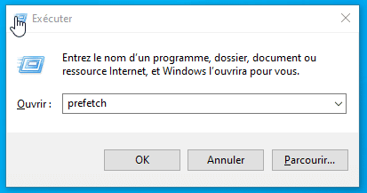 - Deuxième étape : même manipulation, mais cette fois tapez prefetch dans la fenêtre Exécuter, validez, puis supprimez l’ensemble des fichiers du dossier qui s’ouvre.